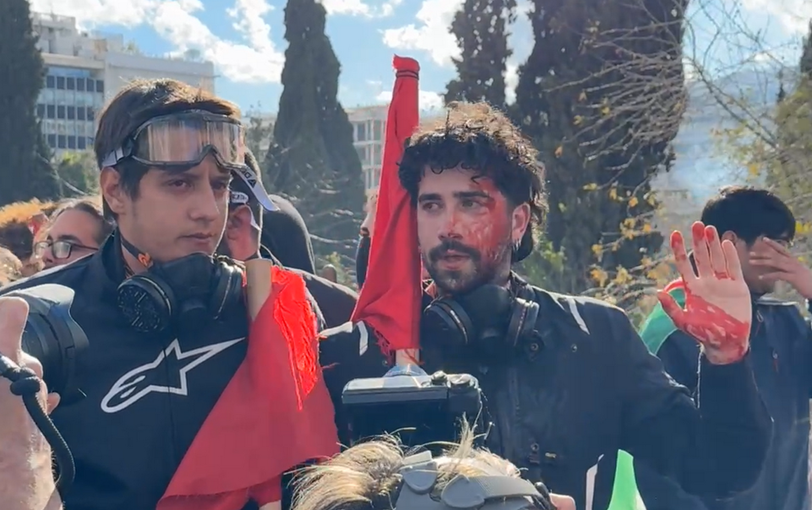 Σε εικόνες που έκαναν τον γύρο του διαδικτύου, φαίνονται φοιτητές με αίματα στο κεφάλι.