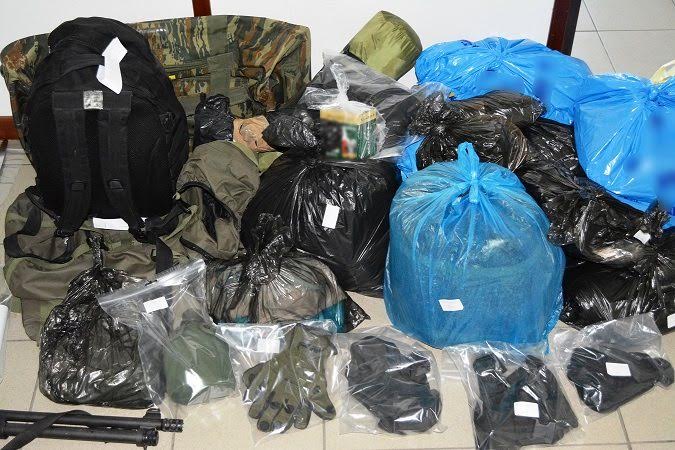 Επίσης, κατασχέθηκε μία σιδερογροθιά και δύο γκλόμπς, 89 καπνογόνα-βεγγαλικά, τρεις συσκευές ενδοεπικοινωνίας, ηλεκτρονικοί υπολογιστές και συσκευή αποθήκευσης ψηφιακών δεδομένων, κινητά τηλέφωνα, τρεις κουκούλες τύπου full face, είδη ρουχισμού (φόρμες στρατιωτικού τύπου, γάντια, τζάκετ κ.α.), διάφορα είδη “επιχειρησιακού” εξοπλισμού (θήκες μαχαιριών, ζώνες φυσιγγίων, σακίδια κ.α.), διάφορα έγγραφα και σημειώσεις και δύο οχήματα, ως μέσα τέλεσης αξιόποινων πράξεων.