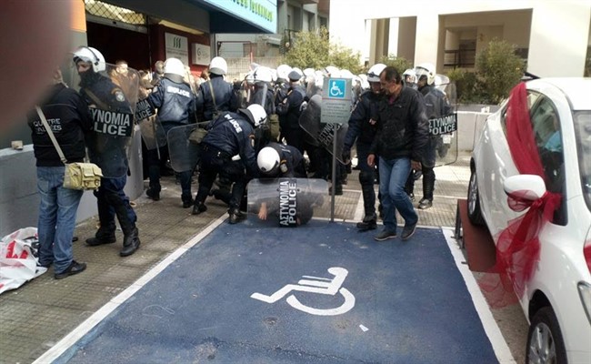 “Με πρωτοφανή βία, οι δυνάμεις καταστολής επιτέθηκαν στους εργαζόμενους. Με ξύλο “στο ψαχνό” κυριολεκτικά, συνέλαβαν 12 άτομα ανάμεσά τους ο πρόεδρος του Εργατικού Κέντρου Νίκος Έξαρχος και ακόμα ένα μέλος της Διοίκησης του ΕΚΙ, πρόεδροι σωματείων κ.α.