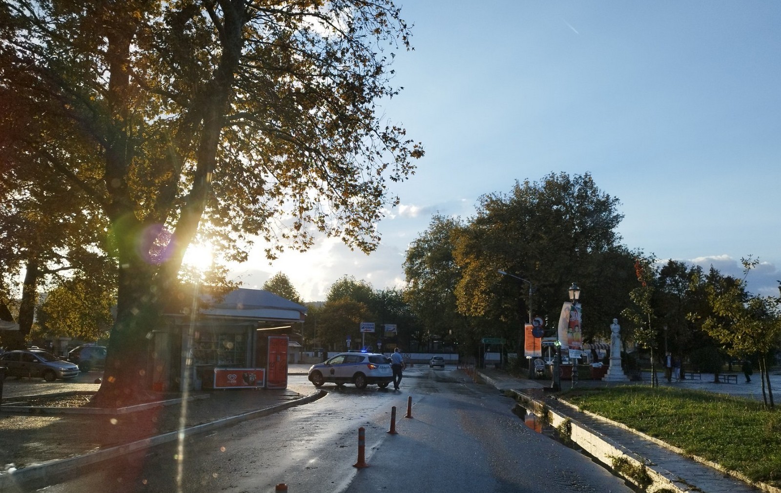 Η Τροχαία προχώρησε σε διακοπή κυκλοφορίας και στην παραλίμνια περιοχή επί της Διονυσίου Φιλοσόφου λόγω του μεγάλου όγκου νερού που καθιστούν αδύνατη τη διέλευση των οχημάτων.