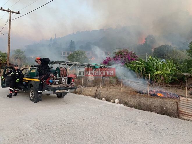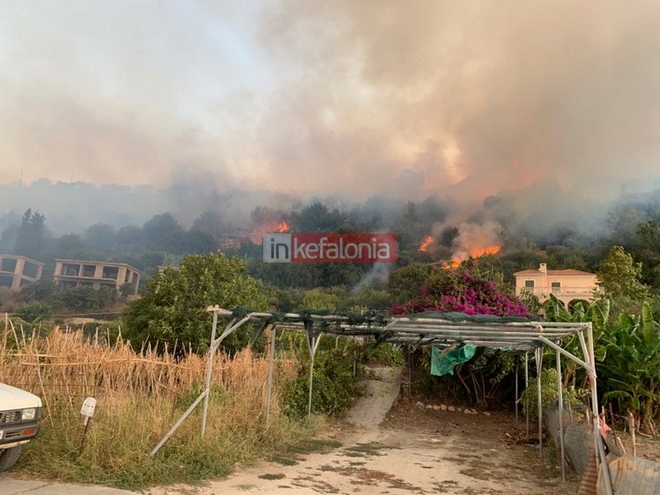 Κάπως αντίστοιχη είναι η εικόνα που επικρατεί αυτή την ώρα και στην Κεφαλονιά, όπου μάλιστα η φωτιά ξέσπασε τα ξημερώματα με ταυτόχρονες τέσσερις εστίες σε Λουρδάτα, Βλαχάτα και προς Τραπεζάκι και αυτό από μόνο του εγείρει ερωτήματα που θα κληθεί να απαντήσει το Ανακριτικό της Πυροσβεστικής, ενώ αυτή η κατάσταση προκάλεσε και μεγάλη διασπορά δυνάμεων, αφού η φωτιά εξαπλώθηκε γρήγορα εξαιτίας των ανέμων και πέρασε στον οικιστικό ιστό στους δύο οικισμούς των Λουρδάτων και των Βλαχάτων.