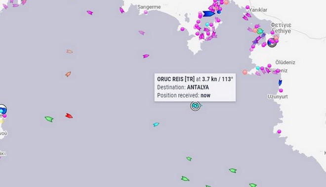 Αξίζει πάντως να σημειωθεί πως κατά την τελευταία ώρα, όπως φαίνεται και από το σύστημα ανίχνευσης, το Oruc Reis έχει απομακρυνθεί από τη Ρόδο, με κατεύθυνση το Καστελόριζο.