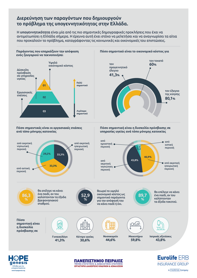 Ένας στους δύο ερωτώμενους (52.9%) θεωρεί το υψηλό οικονομικό κόστος ως πολύ σημαντικό παράγοντα στην απόφασή του για να αποκτήσει τέκνο. Ταυτόχρονα, το οικονομικό κόστος φαίνεται πως αποτελεί πολύ σημαντικό πρόβλημα για το 80% του δείγματος.