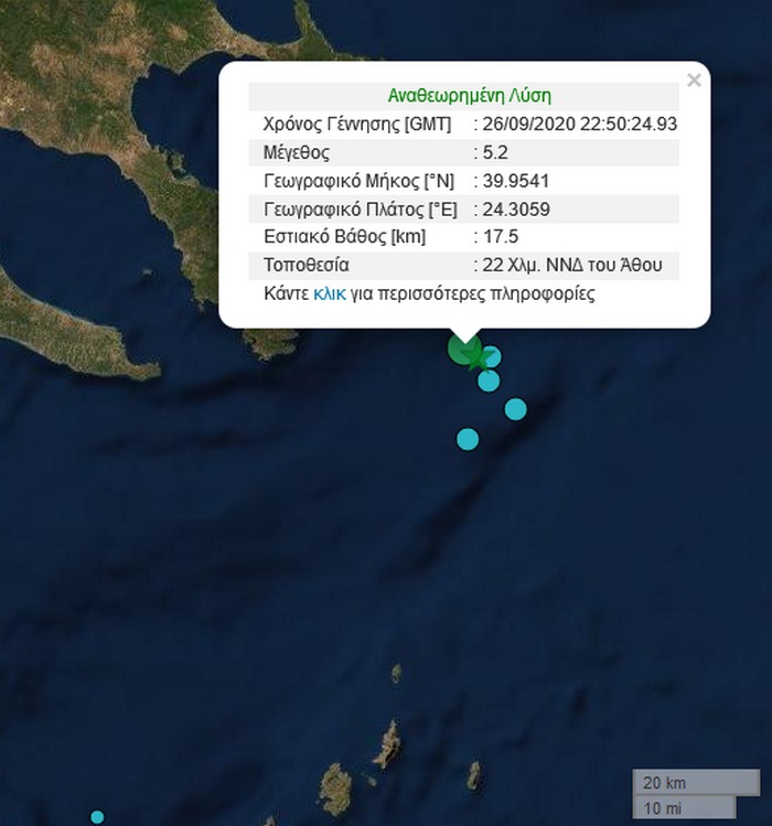 Σεισμός 5,2 ρίχτερ σημειώθηκε 01:50 τα ξημερώματα της Κυριακής ανοιχτά της Χαλκιδικής.