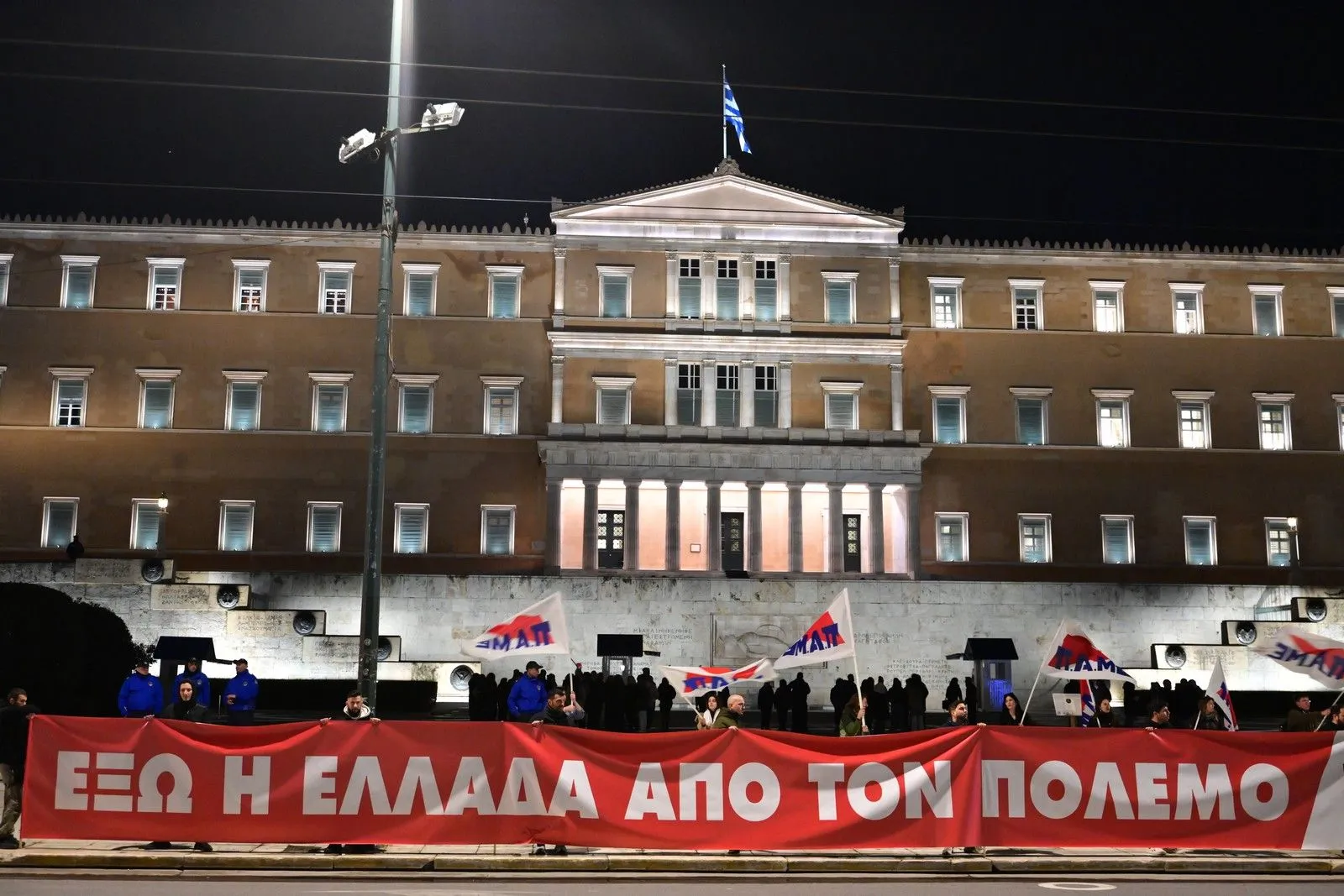 Το σύνθημα “Καμιά συμμετοχή – καμία εμπλοκή – Έξω η Ελλάδα από τον πόλεμο – Δεν θα πληρώσουμε τα σπασμένα!” ήχησε το απόγευμα της Παρασκευής στο κέντρο της Αθήνας.