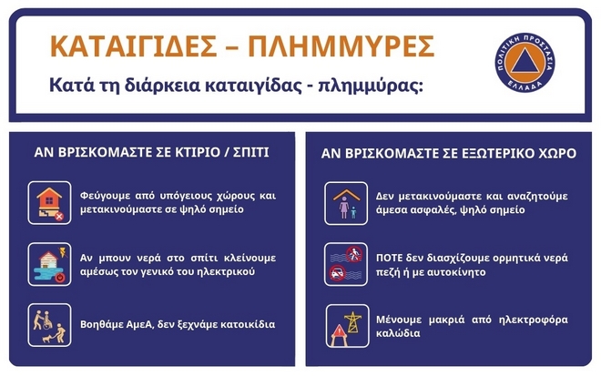 Η Πολιτική Προστασία συνιστά στους πολίτες τα εξής: