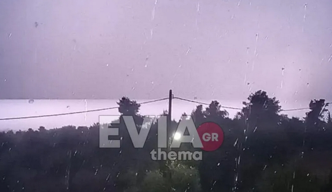Χαλάζι έπεσε και στην περιοχή της Ερέτριας, ενώ στην ευρύτερη περιοχή σημειώνονται και αστραπές, όπως μεταδίδει το eviathema.gr.