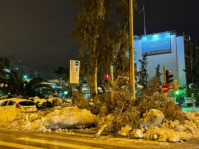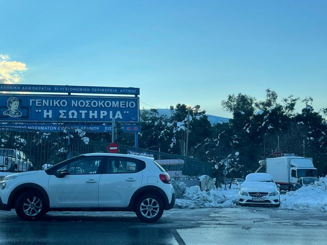Η λειτουργία στα νοσοκομεία Γεννηματάς και Σωτηρία αποκαθίσταται ωστόσο η είσοδος και τα πάρκινγκ τους είναι ακόμη θαμμένα στα χιόνι.