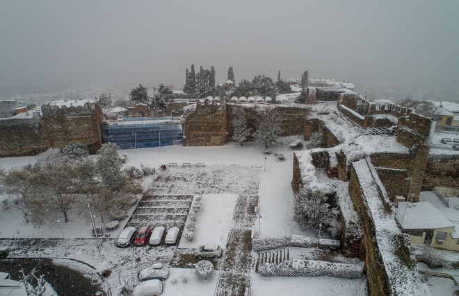 γ. Στην Ανατολική Πελοπόννησο, την Ανατολική Στερεά, την Εύβοια, την Ανατολική Θεσσαλία (κυρίως Μαγνησία), τις Σποράδες και σε πεδινές περιοχές, καθώς και στα ορεινά και ημιορεινά των Κυκλάδων και της Κρήτης. Οι χιονοπτώσεις θα είναι τοπικά πυκνές μέχρι αργά το απόγευμα της Δευτέρας και βαθμιαία θα εξασθενήσουν.