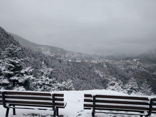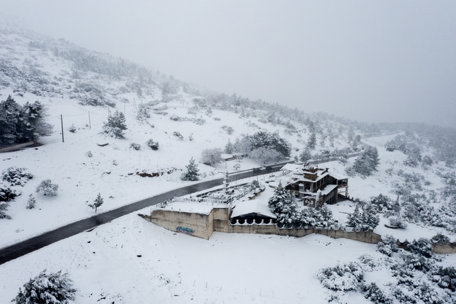 Το πρωί χιόνισε σε περιοχές των βορείων προαστίων της Αττικής,  όπως η Πεύκη και το Χαλάνδρι.