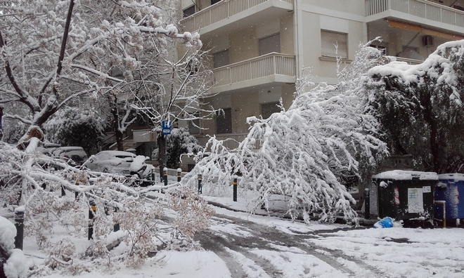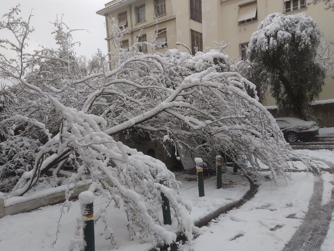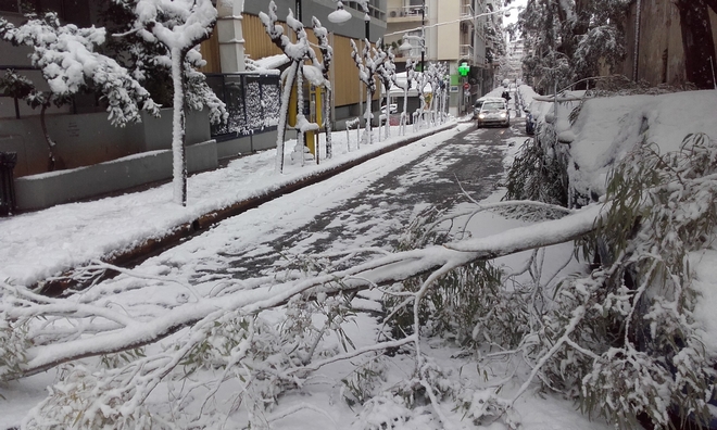 Στον Ευαγγελισμό πριν από λίγο έπεσαν δέντρα από τη χιονόπτωση και τον δυνατό αέρα. Τα δέντρα έμειναν για ώρα στη μέση του δρόμου διακόπτοντας την κυκλοφορία στους γύρω δρόμους.