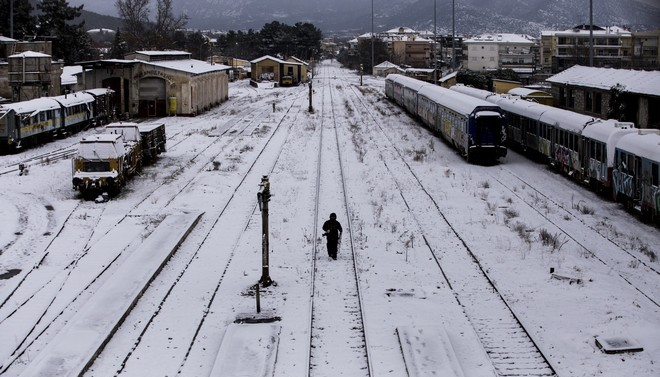 Στιγμιότυπο από την χιονισμένη πόλη των Τρικάλων Eurokinissi