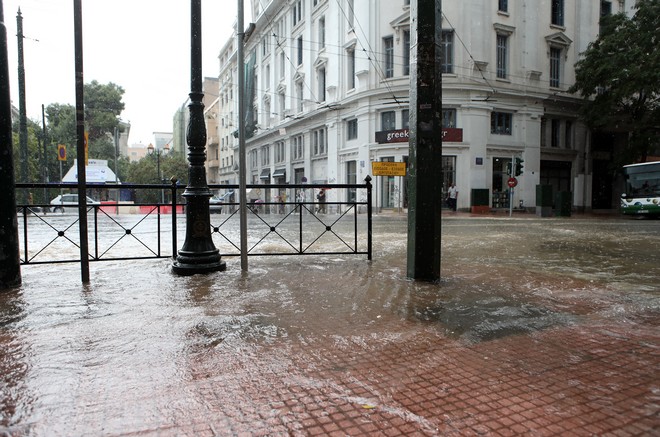 Η ευρύτερη περιοχή του κέντρου της Αθήνας φαίνεται πως έχει δεχτεί τον μεγαλύτερο όγκο νερού καθώς η Πυροσβεστική έχει λάβει 17 κλήσεις για αντλήσεις υδάτων και 5 κλήσεις για κοπές δέντρων.