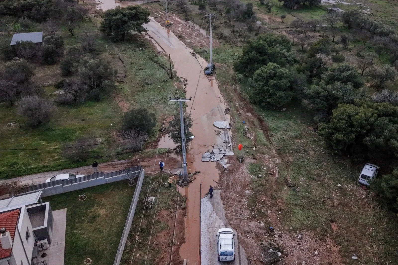 Από τις πρώτες πρωινές ώρες, κάτοικοι της περιοχής δίνουν έναν άνισο αγώνα με τις ζημιές. Με φτυάρια, τσάπες και ό,τι άλλο διαθέτουν, προσπαθούν να ξεθάψουν τα αυτοκίνητά τους, τα οποία έχουν έχουν περικυκλωθεί από όγκους λάσπης και πέτρας.