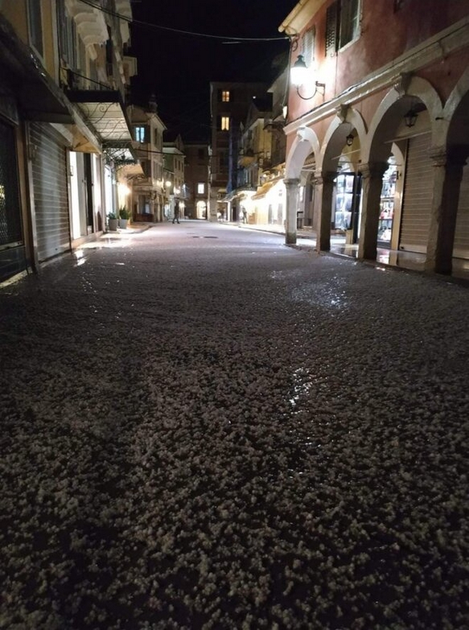 Σφοδρή χαλαζόπτωση έπληξε την Κέρκυρα ενώ στη Ζάκυνθο θα πλοία παραμένουν δεμένα, λόγω της κακοκαιρίας.