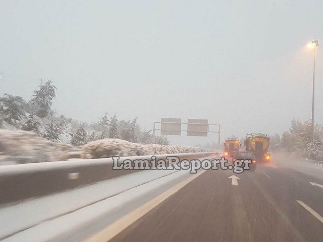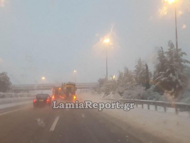 Από τις πρώτες πρωινές ώρες της Κυριακής στην εθνική οδό Λαμίας – Αθηνών χιόνιζε από το ύψος της Τραγάνας μέχρι και την Υλίκη:
