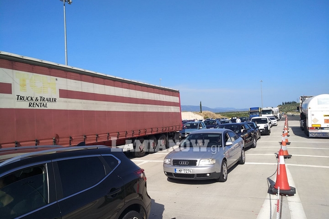 Μεγάλες ουρές έχουν προκληθεί και στα δύο ρεύματα κυκλοφορίας.