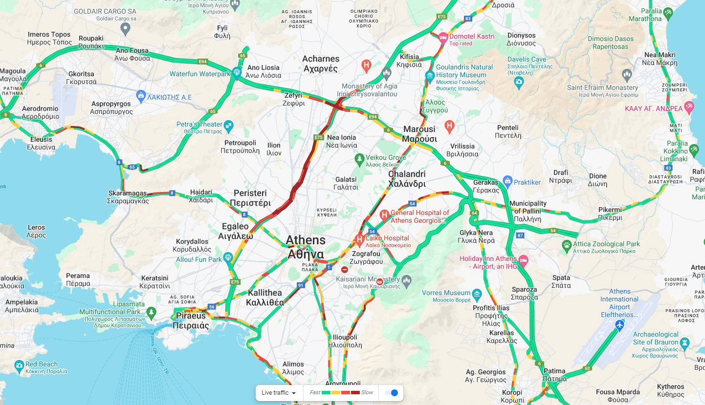 - 10΄-15΄από κόμβο Μεταμόρφωσης έως κόμβο Κηφισίας,