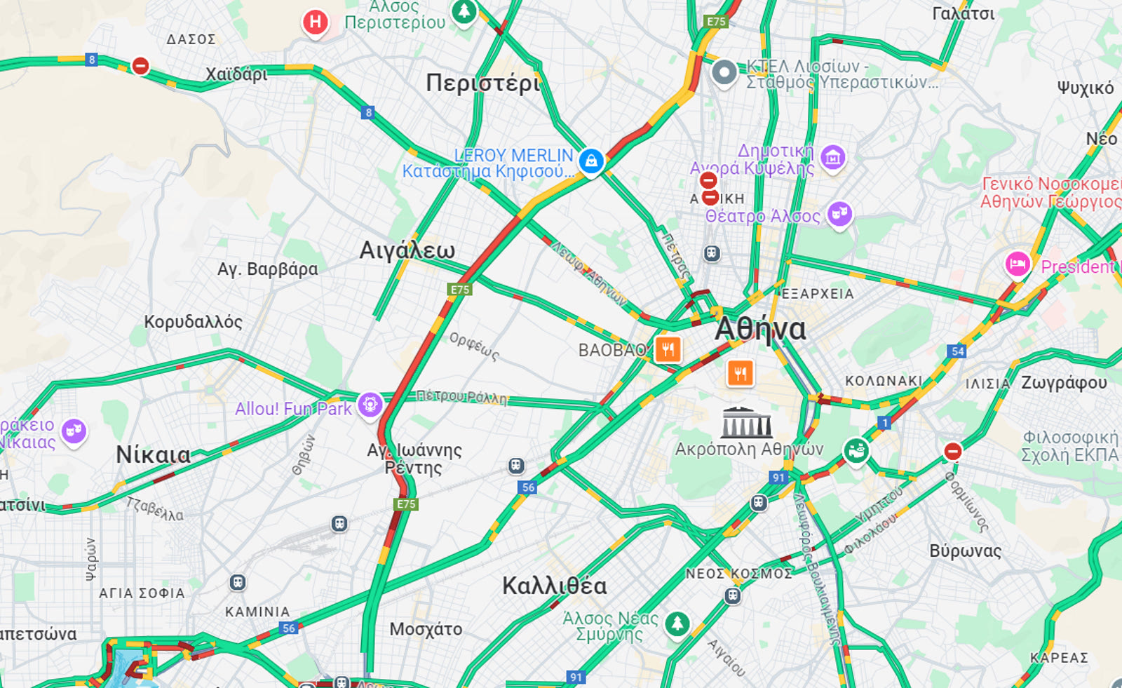 Καθυστερήσεις παρατηρούνται στη λεωφόρο Κατεχάκη (ρεύμα από Ηλιούπολη), στην κάθοδο της λεωφόρου Κηφισίας, στη Βασ. Κωνσταντίνου και στο λιμάνι του Πειραιά, σύμφωνα με την ενημέρωση της Τροχαίας.