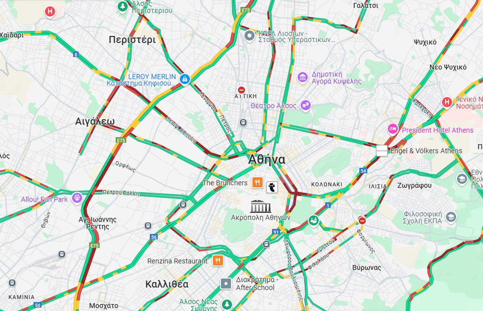 Δυσχέρεια στην κυκλοφορία στη Λεωφόρο Αθηνών και τους γύρω δρόμους, λόγω καραμπόλας με τέσσερα οχήματα. LIVE ΧΑΡΤΗΣ με την κίνηση.
