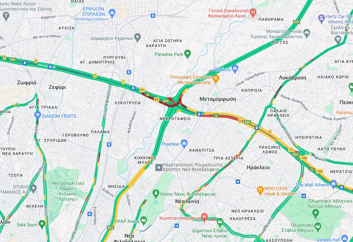 Το τροχαίο σημειώθηκε στο ύψος του κόμβου Μεταμόρφωσης στο ρεύμα προς αεροδρόμιο, με τα προβλήματα να παρατηρούνται από τον κόμβο Δημοκρατίας έως τον κόμβο Ηρακλείου και από τον κόμβο Μεταμόρφωσης έως τον κόμβο Κύμη.