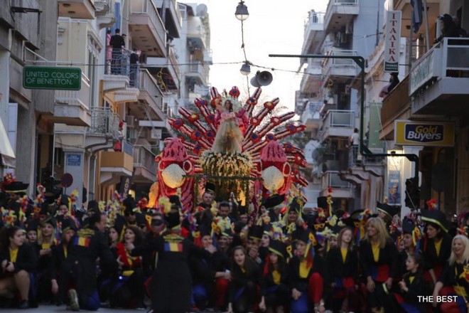 Στην συνέχεια παρέλασαν τα άρματα του δήμου Πατρέων, με επικεφαλής τον βασιλιά καρνάβαλο και ακολούθησε το άρμα της βασίλισσας, με την βασίλισσα του φετινού πατρινού καρναβαλιού, Αναστασία Ψαρρού.
