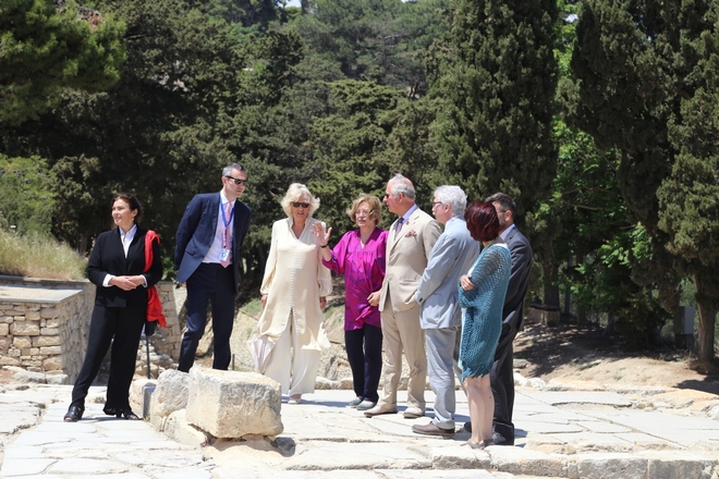 Ο πρίγκηπας της Ουαλίας, Κάρολος και η σύζυγός του, δούκισσα της Κορνουάλης, Καμίλα στο πλαίσιο της τριήμερης επίσκεψής τους στη χώρα μας προσγειώθηκαν το μεσημέρι στο Ηράκλειο, μεταφέρθηκε με αυτοκίνητο στην Κνωσσό, όπου ξεναγήθηκαν από την υπουργό Πολιτισμού, Λυδία Κονιόρδου και την γενική γραμματέα του υπουργείου, Μ. βλαζάκη.