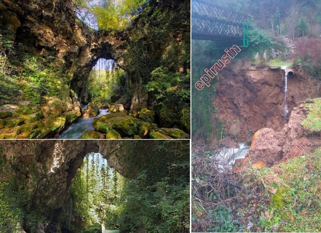 Το φυσικό γεφύρι στην περιοχή της Ζίτσας κατέρρευσε λόγω των έντονων βροχοπτώσεων σύμφωνα με τις πρώτες εκτιμήσεις