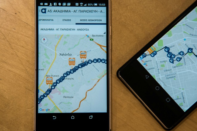 Θέσεις λεωφορείων (αποτυπώνεται η θέση των λεωφορείων πάνω σε χάρτη σε πραγματικό χρόνο).