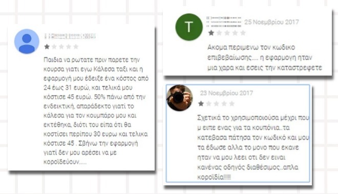 Άλλος χρήστης εντός της αξιολόγησης της εφαρμογής στο Google Play σημειώνει πως τα εκπτωτικά κουπόνια που διέθετε έληξαν νωρίτερα από την προβλεπόμενη ημερομηνία. Για την ακρίβεια, αυτό είναι κάτι που παρατηρούν μια σειρά από χρήστες έξυπνων κινητών τηλεφώνων. Πολλοί από αυτούς να σημειώνουν πως βρέθηκαν εκτεθειμένοι στον οδηγό που τους παρέλαβε, καθώς ενώ διέθεταν την έκπτωση, εκείνη μετά την διαδρομή εξαφανίστηκε και κλήθηκαν να πληρώσουν ολόκληρο το ποσό της διαδρομής.