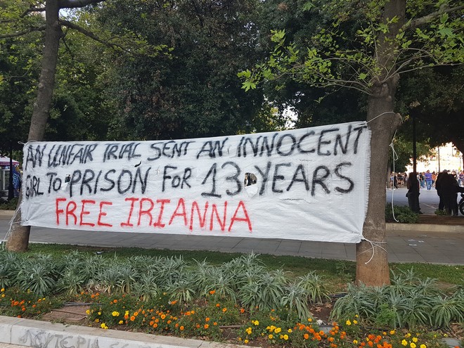 Πλήθος κόσμου συγκεντρώθηκε αργά το απόγευμα της Παρασκευής στο κέντρο της Αθήνας, διαμαρτυρόμενο για τη φυλάκιση της Ηριάννας. "Εμείς επιλέγουμε με ποιούς θα ζήσουμε, στις 17/7 παίρνουμε την Ηριάννα πίσω" γράφουν οι διαδηλωτές