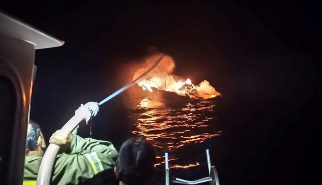 Φωτιά ξέσπασε σε σκάφος με δύο επιβαίνοντες, που έπλεε σε θαλάσσια περιοχή της Κεφαλονιάς χθες, Τετάρτη (14/09), με αποτέλεσμα να βυθιστεί.