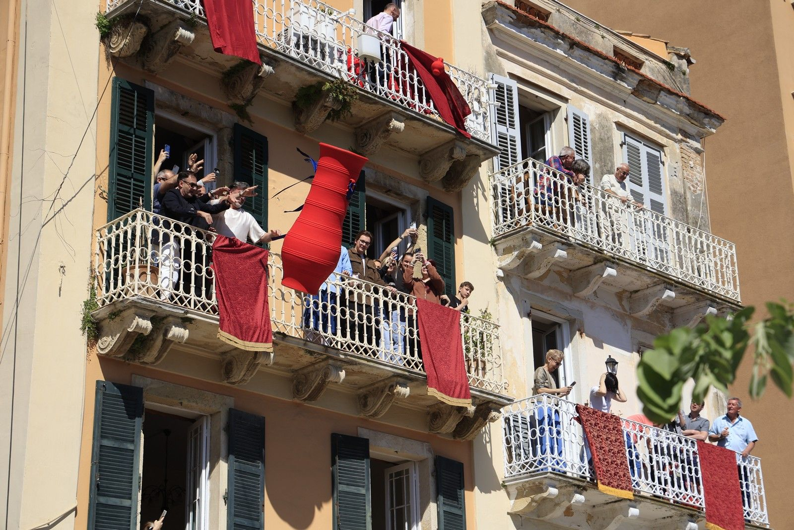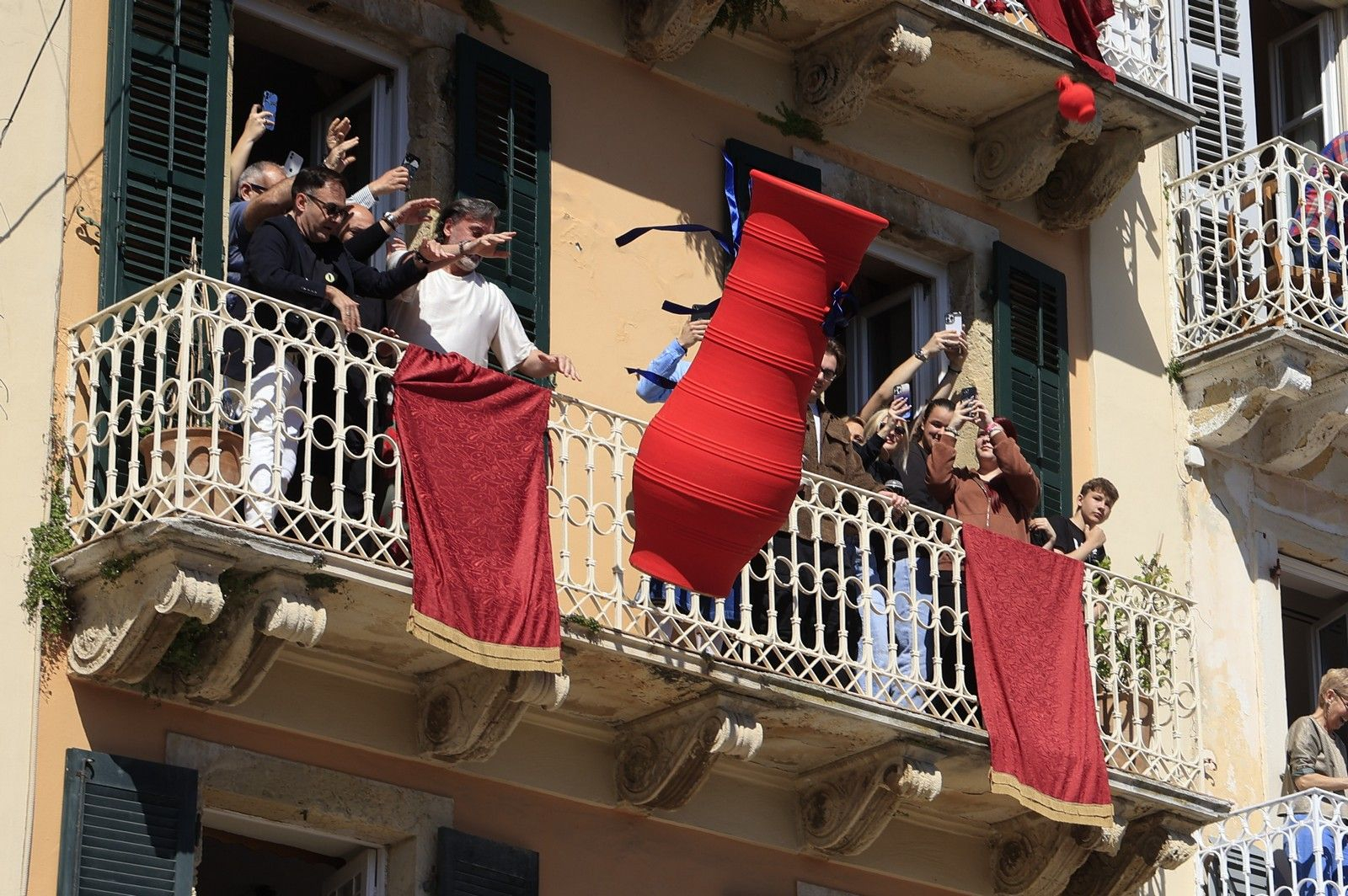 Κάτοικοι της Κέρκυρας πετούν από τα μπαλκόνια τους μπότηδες ΓΙΩΡΓΟΣ ΚΟΝΤΑΡΙΝΗΣ/EUROKINISSI