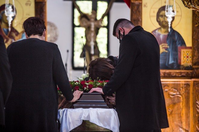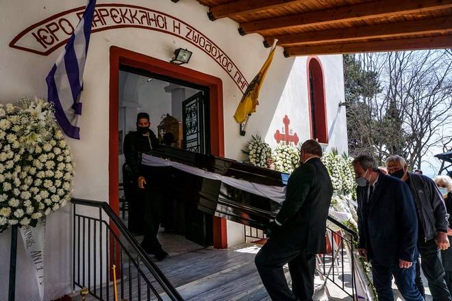 Μάλιστα, όταν βγήκε η σορός του Γιώργου Καραϊβάζ από το παρεκκλήσι για να μεταφερθεί στο νεκροταφείο, ο γιος του έβαλε το γνωστό ζεϊμπέκικο, «Το βουνό», συγκινώντας όλους όσοι ήταν στο σημείο.