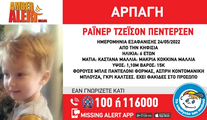 Συναγερμός έχει σημάνει στις αρχές μετά την αρπαγή του 6χρονου Ράινερ Τζέισον Πέντερσεν από την Κηφισιά.