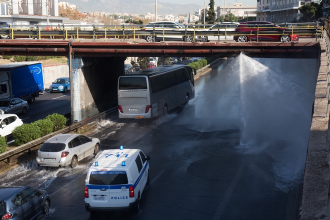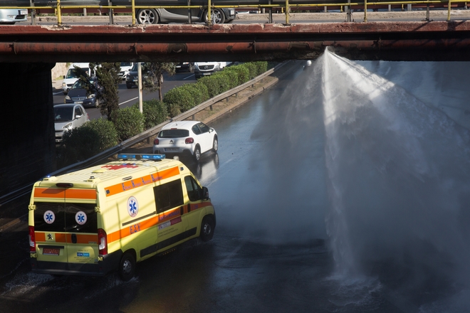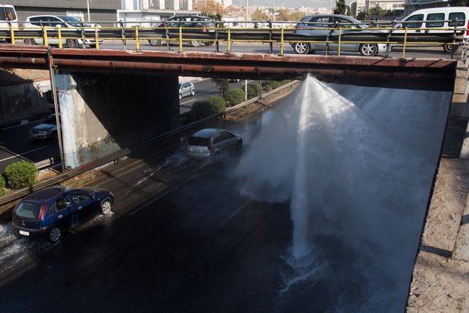 Έσπασε αγωγός της ΕΥΔΑΠ στη λεωφ. Κηφισού EUROKINISSI