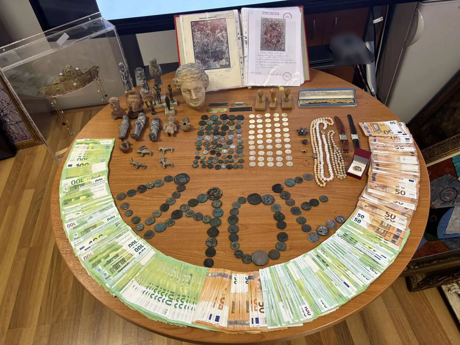 Συνολικά, από τις έρευνες που πραγματοποιήθηκαν σε οικίες και λοιπούς χώρους σε περιοχές της Αττικής, βρέθηκαν, μεταξύ άλλων και κατασχέθηκαν πίνακας ζωγραφικής σε σταθερό υπόστρωμα, με την υπογραφή Picasso 1965, διαστάσεων 130 εκατοστά επί 85 εκατοστά, πίνακας ζωγραφικής σε ξύλο με ημερομηνία 22/12/1967 και υπογραφή GAUTIER, 204 πίνακες ζωγραφικής διαφόρων Ελλήνων και ξένων ζωγράφων, 19 θρησκευτικές εικόνες ζωγραφικής, 2.087 νομίσματα, η πλειοψηφία των οποίων εμπίπτει στο νόμο περί αρχαιοτήτων (αρχαίας ελληνικής, ρωμαϊκής, ελληνορωμαϊκής, βυζαντινής και νεότερης περιόδου).