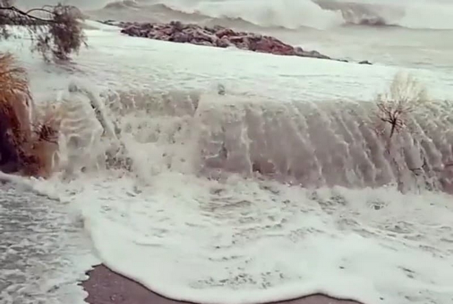 Όλοι οι χείμαρροι έχουν φουσκώσει και έχουν μεταφέρει τόνους λάσπης σε κάθε παραλιακή πρόσβαση ενώ η βροχόπτωση συνεχιζόταν το μεσημέρι με ιδιαίτερα μεγάλη ένταση.