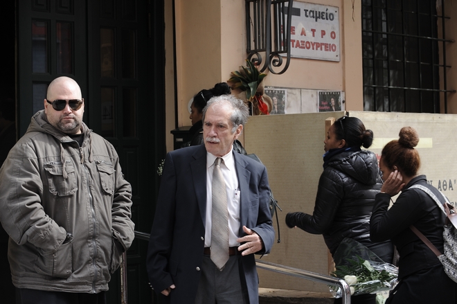 Ήδη από νωρίς το πρωί της Πέμπτης, στο θέατρο Μεταξουργείο, στην οδό Ακαδήμου, συγκεντρώθηκε πλήθος κόσμου για να τιμήσουν για ύστατη φορά τον αξέχαστο “καουμπόι” του ελληνικού τραγουδιού, έναν άνθρωπο που άφησε ανεξίτηλο το στίγμα του, μιλώντας με τον πιο απλό τρόπο για τη μικροαστική ζωή μας.
