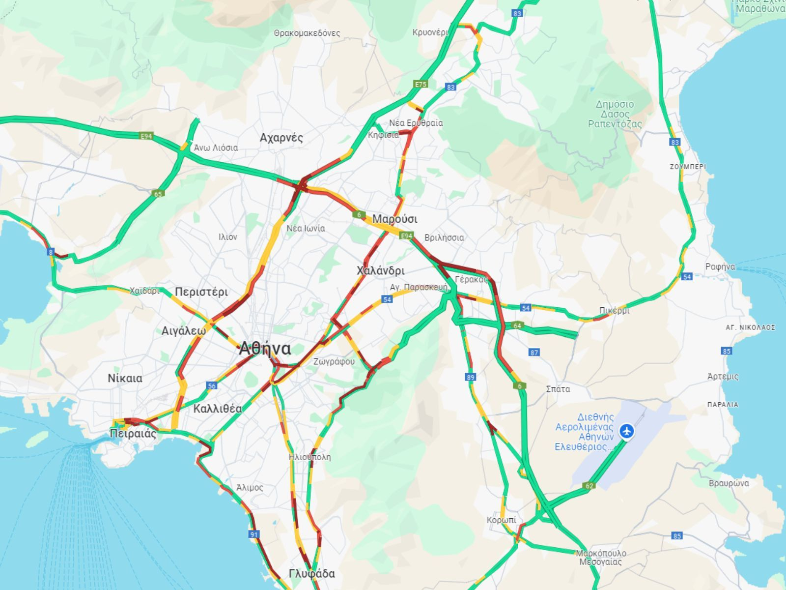 Μετ’ εμποδίων η κίνηση στους δρόμους – Απέραντο “πάρκινγκ” ο Κηφισός και η Αττική Οδός – LIVE ΧΑΡΤΗΣ