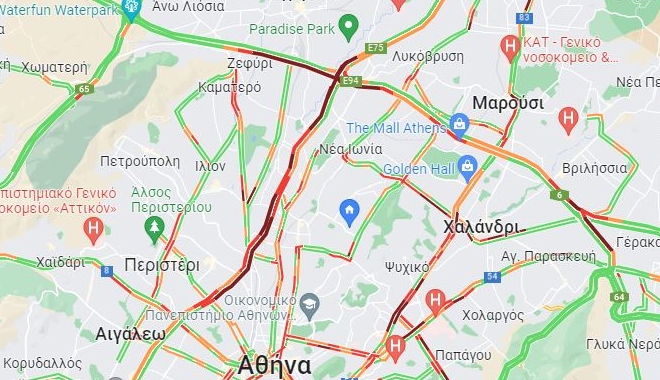 Κίνηση στους δρόμους: Απροσπέλαστος ο Κηφισός, στο “κόκκινο” η Κηφισίας – LIVE Χάρτης
