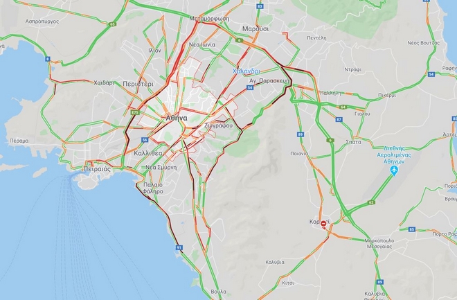 Αρκετά προβλήματα και την Αλίμου – Κατεχάκη, προς Μεσογείων, και στην κάθοδο της Κηφισίας στο ύψος του Γηροκομείου.