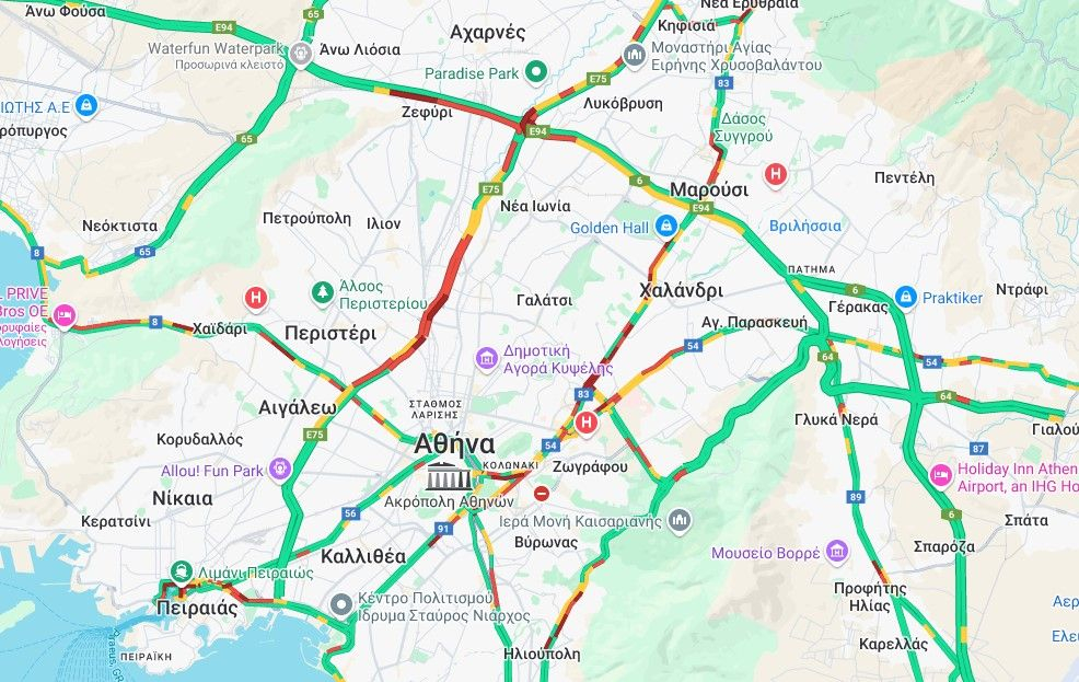 Κίνηση στους δρόμους: Μποτιλιάρισμα σε Κηφισό και Αττική Οδό – LIVE ΧΑΡΤΗΣ