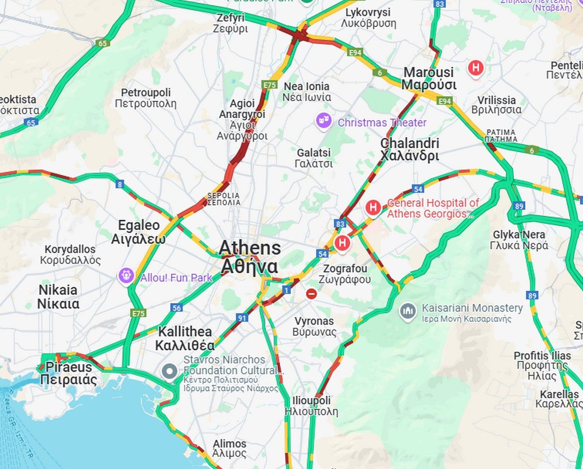 Κίνηση στους δρόμους: Μποτιλιάρισμα σε Κηφισό και Αττική Οδό – LIVE ΧΑΡΤΗΣ