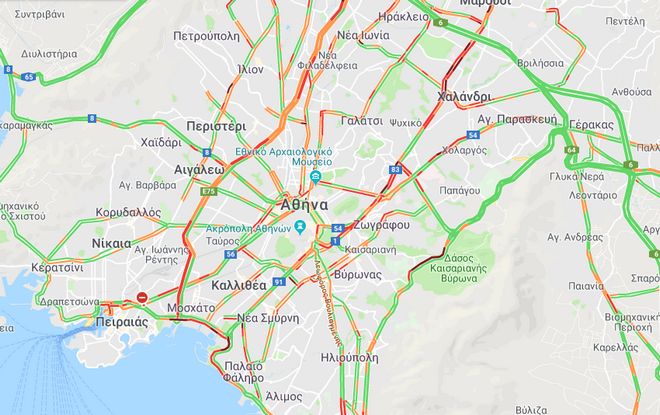 Δείτε ζωντανά στο χάρτη σε ποια σημεία παρουσιάζεται κυκλοφοριακή συμφόρηση και τους δρόμους που πρέπει να αποφύγετε