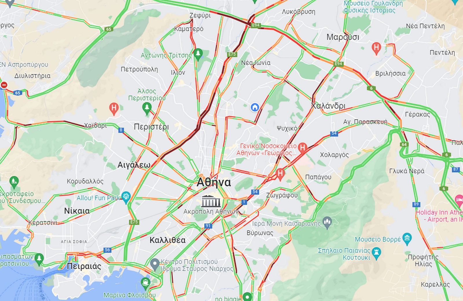 Κίνηση στους δρόμους: Φρακαρισμένος ο Κηφισός, “κόκκινη” η Κηφισίας – LIVE Χάρτης
