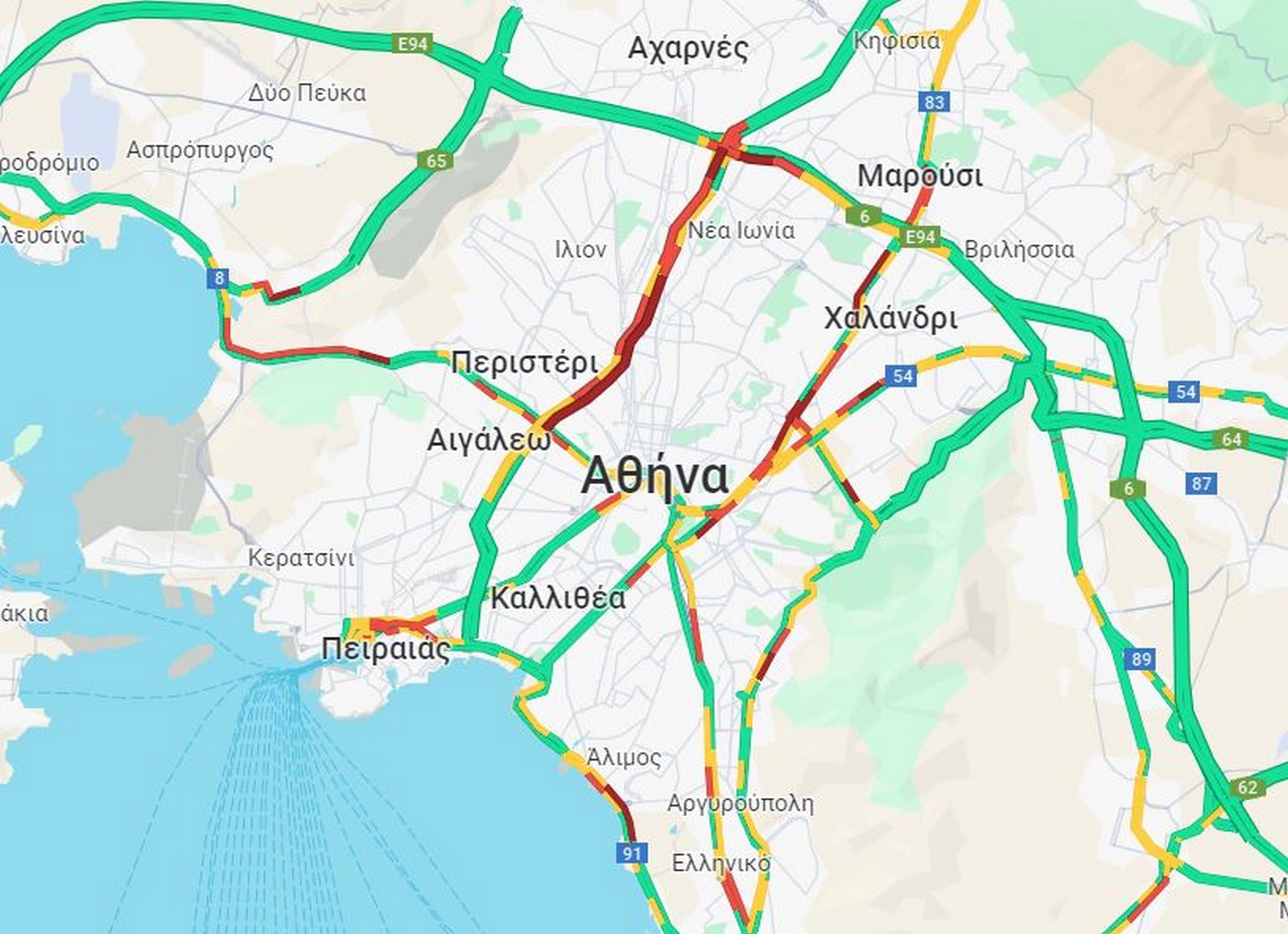 Μποτιλιάρισμα υπάρχει στην άνοδο του Κηφισού, από το Αιγάλεω μέχρι τις Τρεις Γέφυρες, ενώ μπλοκαρισμένα οχήματα υπάρχουν και στον κόμβο της Αττικούς Οδού, στην έξοδο προς Μεταμόρφωση.