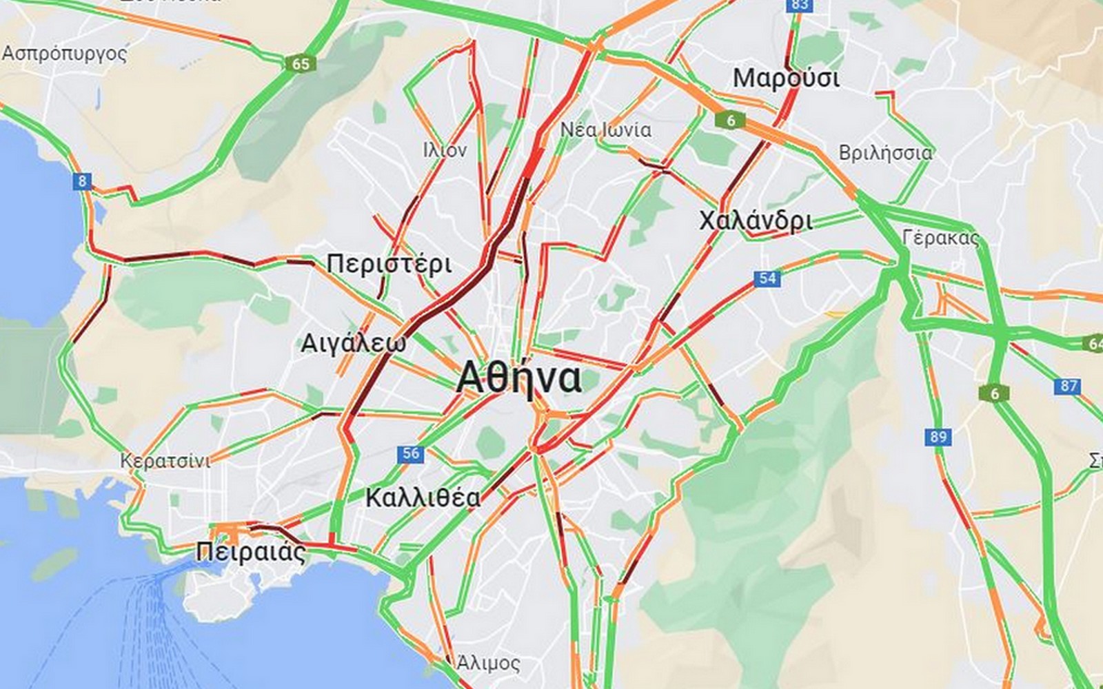 Το κέντρο της Αθήνας βρίσκεται στο “κόκκινο”, ενώ μποτιλιάρισμα υπάρχει επίσης στη Λεωφόρο Αθηνών, αλλά και στην Ποσειδώνος.