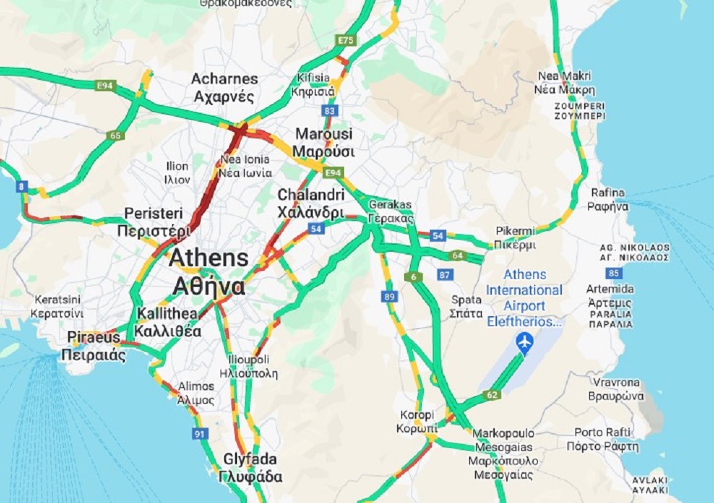 Κίνηση στους δρόμους: “Κατακόκκινος” ο Κηφισός – LIVE ΧΑΡΤΗΣ