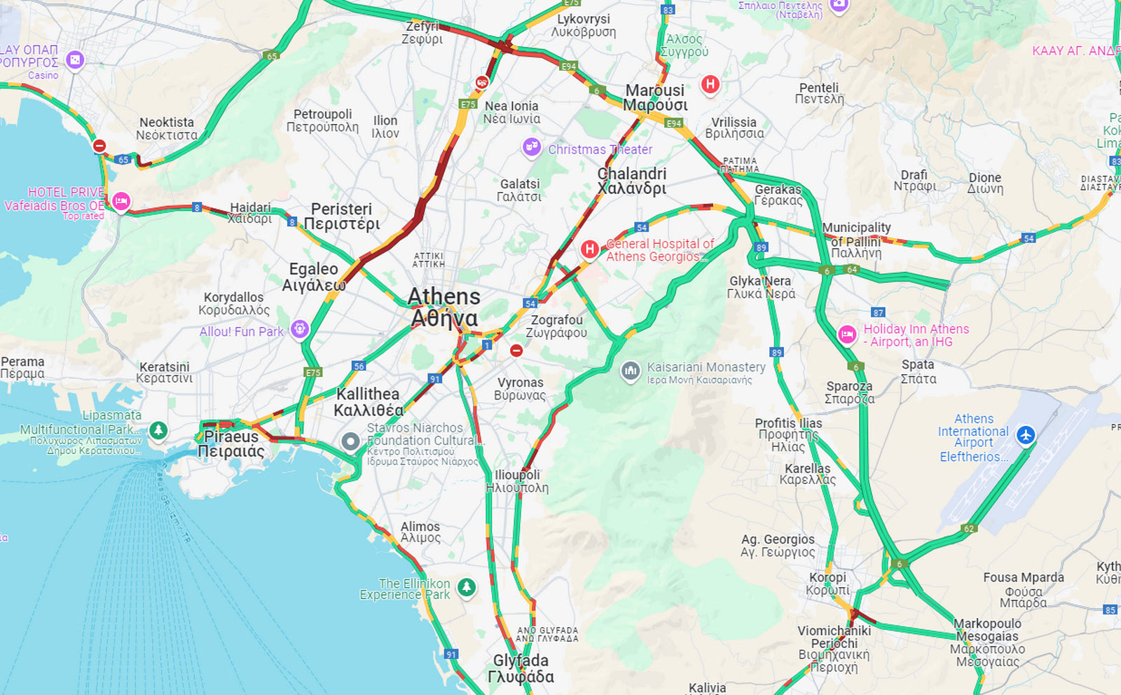 Κίνηση στους δρόμους: “Κόκκινος” ο Κηφισός, προβλήματα στο κέντρο – LIVE ΧΑΡΤΗΣ